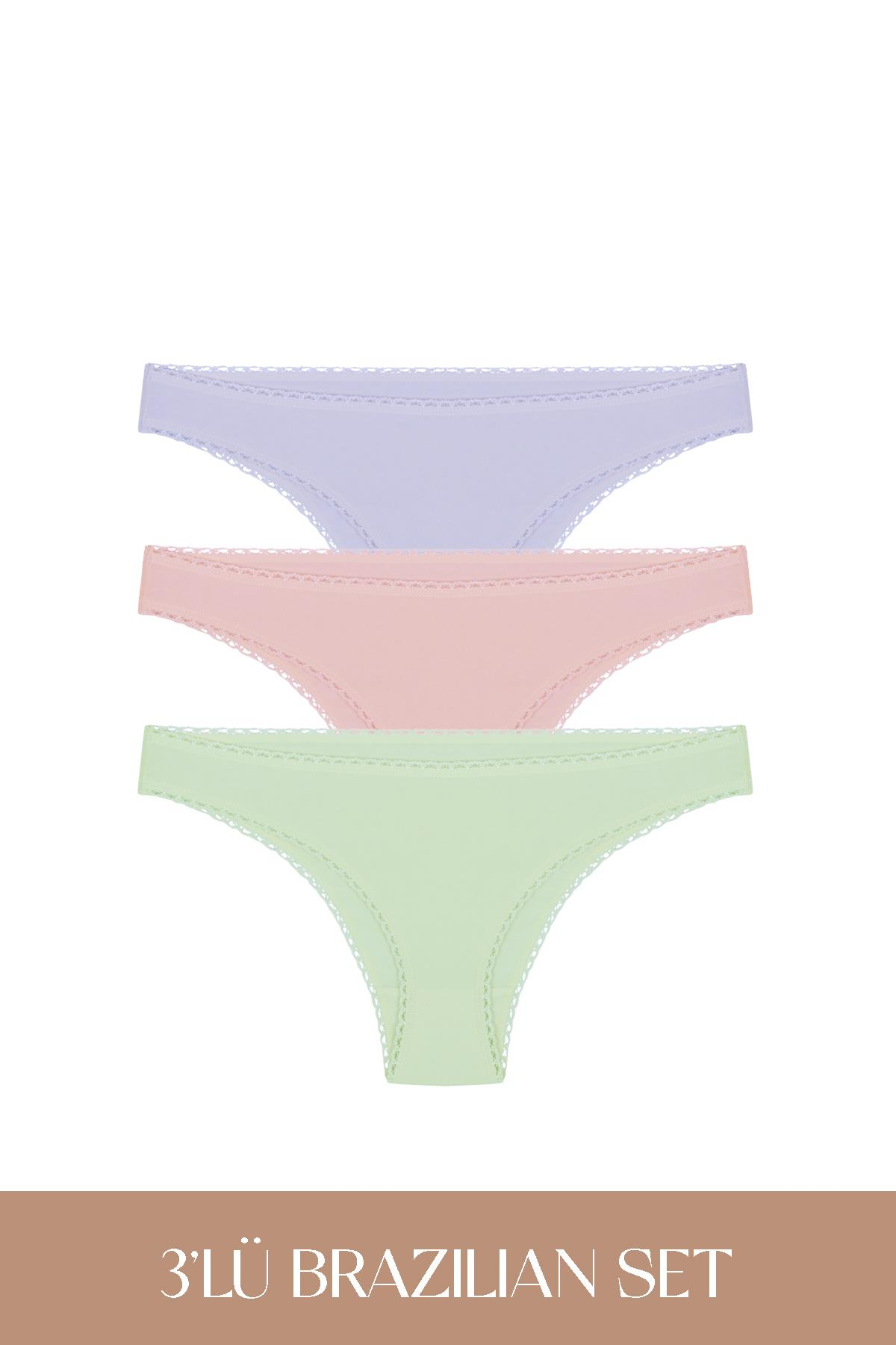 Cotvie 3 Renk LMG Pamuklu Brazillian 3'lü Set Külot (F0134-3 Renk LMG)