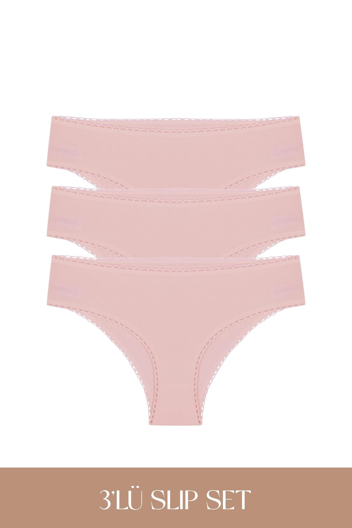 Cotvie Gül Kurusu Pamuklu Slip 3'lü Set Külot (F0132-Gül Kurusu)