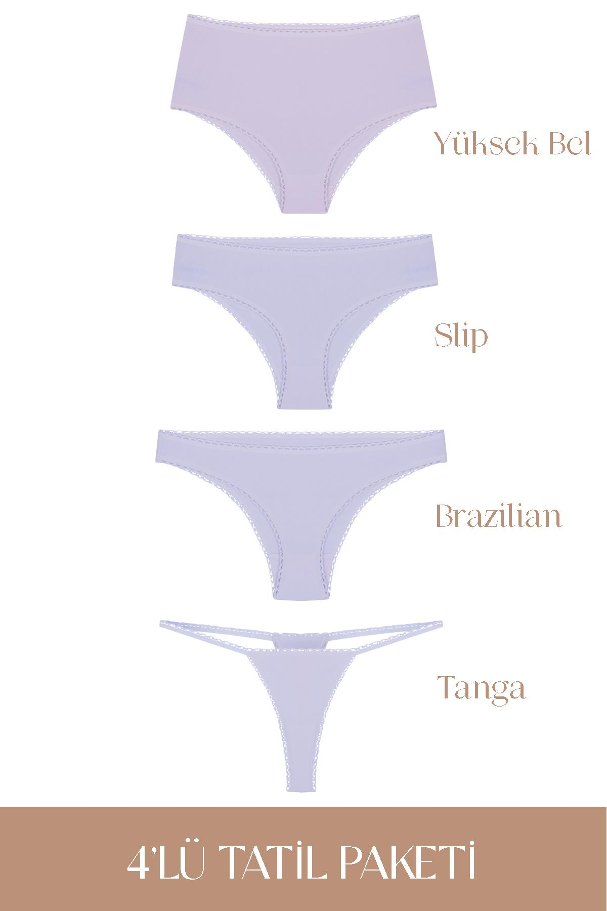 Cotvie Lila Pamuklu 4'lü Tatil Külot Seti (F0135-Lila)