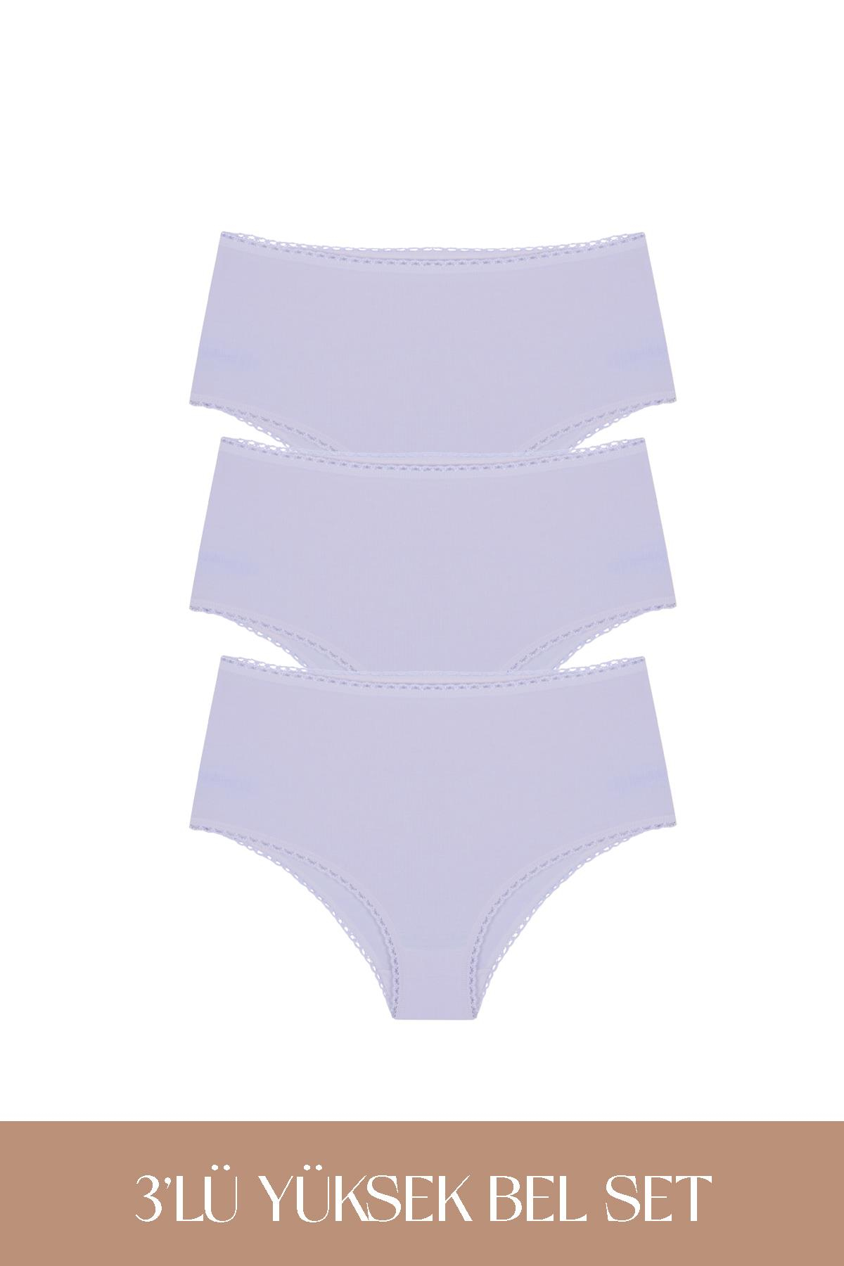 Cotvie Lila Pamuklu Yüksek Bel 3'lü Set Külot (F0131-Lila)
