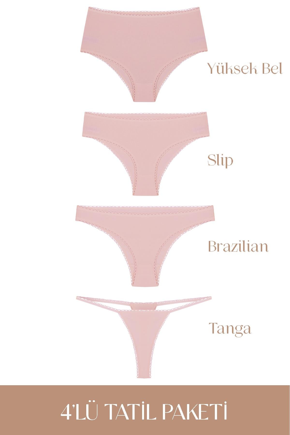 Cotvie Gül Kurusu Pamuklu 4'lü Tatil Külot Seti (F0135-Gül Kurusu)